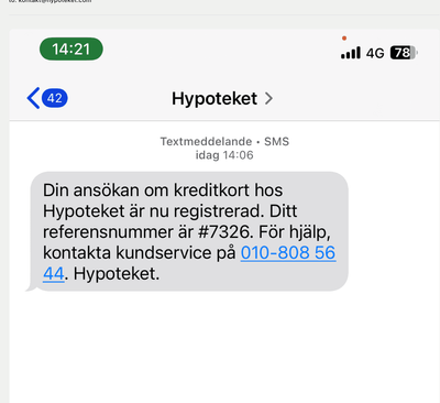 Just nu pågår ett bedrägeriförsök där någon skickar ut SMS om kreditkortsansökningar som ser ut att komma från Hypoteket.